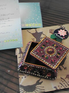 この前、ガオちゃんのページが、20000HITしました。その時に、なななんと!!!あたしがキリ番をゲットしてしまいましたキリ番なんて初めてで・・・かなり嬉しかったですしかもキリプレまで送ってくれるということで、とーーーっても楽しみに待ってました♪そしたら今日・・・届いたんです~~こちらで~す!ガオちゃんお気に入りのショップの小物入れです民芸ちっくな小物入れで、あたしの好みですハートとかピンクとか好きだし・・・早速、パソコンラックの飾り棚に置いてみました♪何入れようかな~そして、ありがとう!ガオちゃん∩(・∀・)∩*そして今日は、この前言っていた、ドラえもんの、”のびたの恐竜2006”を観てきました。なんと!レディースデーで、あたしが1200円で観れたので、かなり安く済みました♪小さい時に観たストーリーと、ほぼ同じでしたが、子供たちのノリや言葉使いが、最近の子と言う感じになっていて、それはそれでリアルな感じがあって良かったです。・・・ジャイアンも「超~キレイ!」とか言ってるし(笑)みんな、ノリが良くて面白い場面などは、開場中の子供たちが大きな声で笑っていて、それも良かったな~^^雨が降っていたけど、頑張って行った甲斐がありました。*そして、昨日の夜フキ味噌を作りました。この前頂いたフキのとうを、そのまま放置しておくと、香りが逃げそうだったので・・・(・・すっかり画像貼るの忘れてた・・・今更ですが、UPします。春なので?ボケ気味・・・笑)少々甘めですが、そんなに苦くなくて美味しく出来たような気がします。ご飯につけて、海苔で巻いて食べると、あぁ~~~、幸せ~日本人で良かったぁ~・・・という気分に浸れます(笑)オニギリに塗って、焼きオニギリにしても美味しそう!まだまだ、たくさん残ってるので、友達Aにおすそ分けしてから、楽しみに頂こうと思ってますあ、友達Aと言えば、長女のAちゃんが明日入学式です。全国的に、今週は入学式多いのかな??今年、ご入学、ご入園のみなさん、おめでとうございます゚・*:.。. .。.:*・゜去年の今頃は、もうすぐちゅんの入園♪なんて言ってウキウキしてたな~。懐かしいけど、ついこの間みたいだよ。