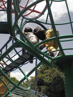 昨日の6回目の結婚記念日は、晩ご飯だけ食べに行ったものの・・・帰ってきて、ちゅんと父ちゃんが外で花火をしてる間にあたしは眠りこけてしまい・・・なんと、8時就寝でしたロマンティックな夜とは、程遠いわ。。。結婚記念日は6回目だけど、付き合いだしてからも、11回目の記念日だったので(付き合い始めと、結婚記念日を同じ日にしたの~♪)、もっとお酒飲んじゃったり、楽しく過ごそうと思ってたのに~。夜中1人で起きて、歯を磨いてるなんて想像してなかったわ。。。(笑)しかも、今朝は早く起きて遠足の準備しようと思ってたのに、起きたら7時~~~!!!(←それでも普段より早い。笑)慌てて準備したり、お弁当作ったりしました。お弁当も、あたしの分もあるので多いーちょっとハードな朝でした。*そして、バスに乗って遠くの公園へ~・・・とは言うものの、3人で行った事はあるところですが。それでも、ちゅんがその公園の通称名を知ってたのにはびっくり。あたしも当然知らなかったので・・・昨日、幼稚園で教えてもらっていて覚えたみたい。余程楽しみだったらしい・・・公園に着いたら、お決まりの記念撮影にゲーム。その後、自由遊びになりました。仲良しの男の子同士、楽しそうに色んな所へ走り回るちゅん。やはり、いくらインドア派でも友だちとの公園遊びは楽しいらしい。。。でも、ついて回るママも大変~~~息を切らしながら追いかけました。*お腹減ったよ~と思い始めたら、お楽しみのお弁当&オヤツの時間。遅く起きたのと、今夜は父ちゃんが飲み会でご飯いらないので、ご飯は炊かずにサンドウィッチで済ませました。ちゅんはデザートへまっしぐら~ちっともサンドウィッチは食べてくれませんでした~でも、ちょうどお隣に座って食べたマミイィ親子がサンドを食べてくれて、そのお返しに美味しい巻き寿司をくれたのでお米もパンも両方楽しめました*お弁当の後も、ますます遊びまくる子供たち・・・友達Aの腰の具合が悪かったので、1番下のちびっ子Kちゃんがあたしの方に来てくれたので、一緒に遊んでいました。遠足の日に具合悪いと大変そうだなぁ~~Kちゃんがなついててくれて良かったなぁ~と、心底思いました。これで、いつもの恩返しが少し出来たかも??そして、ちゅんもマミイィが楽しく遊んでくれて、マミイィの息子ちゃんとちゅんも、大の仲良しさんなので、みんなで友達Aのサポートが出来た感じで良かったです。マミイィに、滑り台の宇宙旅行へ連れてってもらったり、トイレへ敵を倒しに行ったちゅんは、すっかり大満足して帰ってきました