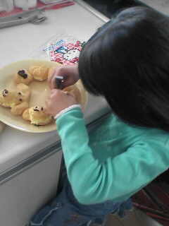 今日は友達A宅に1日お邪魔してましたついつい、くつろいで長居してしまうお家。午前保育で帰って来るちゅん達をお迎えに、お昼に幼稚園に行って、お昼も食べさせてもらって、お昼からは、更にもう1人お友達が子供を2人連れてシュークリームを作りに来ました総勢6名の子供たち。幼稚園で顔なじみの子供たちは、キャーキャー大騒ぎ!!早速遊び始めました。*シュークリームは、遊びに来た友達がベネッセで取っている雑誌に付いているシュークリーム製作キットで。シュークリームミックス粉から中のクリーム粉、上にデコレーションする、チョコペンまで全部セットになっているもので、生地とクリームまでは作って来てくれました。なので、絞ってオーブンで焼いてデコレーションするだけ。中でも大きいちびっ子2人、友達AのとこのAちゃんと、ちゅんが興味アリアリ!シュークリームの生地が焼けると、2人でチョコペンを握りしめて生地が冷めるのを待っていました。そして、冷めたら半分に切ってクリームを詰めてチョコペンで描き描き。こちらは、Aちゃんが一生懸命描いてます。結局ちゅんは1つ描いただけで飽きてしまったのか?後はAちゃんに託してオヤツを食べに行ってしまいました上手に描けたかな~??チョコペンって案外難しいんですね~。結構温めて柔らかくして・・・描こうとすると、力加減を間違えるとブチュッと出ちゃうし。完成品は、こちらで~す!手前の犬なんか、とってもよく出来てる美味しそう~~っ!・・・ってなわけで、早速みんなで頂きました。食べた後は、しっかり6時ごろまでお邪魔して、汗をかくくらい遊ばせてもらってきました。いつもながら、お世話になりました