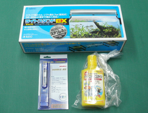注文していた商品が到着!! 今回はアクアアベニューさん 中身はこんな感じです!!TDSメーター・ライトスタンド・送料無料の為のカルキ抜きの3点 計5,090円で購入しました。発送用の外箱ボールはリサイクルでエコだな~しかし、箱の商品名が気になります。みかんシャーベットD セブンプレミアム 12パック入なんだか・・・美味そう!!! 美味しそう!! どんな味なのだろう??箱を開けた後も気になります!! 気になるのを我慢して、60cm水槽のみライトを水槽へ直接置いていたので、早速設置しながら やはり気になる??(ガマン)温度上昇の緩和になるはずです。これで3本並んだ水槽全てがライトスタンド有りで初期対策はOKです。TDSも気になりますが・・・シャーベットで頭が 麻痺???気を取り直して後の水温対策はそれぞれの水槽へ3台所有のテトラクールタワーの設置を残す状態となりました。60cmにCR-3新型・45cmにCR-3旧型・40cmにCR-2の予定です昨年は、空調28~29度以下との併用でプレ冷却のみで夏を乗り越えましたが今年は設置状況が変わってるので不安クールタワーはプレ冷却が常時稼働するので、気温の状態を見て逆サーモ付きでの設置ですね!!やばぃ!! 食べれないのに・・また みかんシャーベットが頭の中に(困)今日はこのへんで200hiace