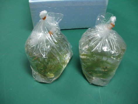 昨日、準備していたレッドビーシュリンプの里子を無事送り出しました。水槽ごとに2つの袋へ分けて袋は2重です。(近所のショップの方から頂いた袋です)以前、えさを購入した時の発砲の容器が残っておりそのまま再利用!! エコですね~(笑)少しでもショックを減らしたいと思いプチプチでカバー蓋を閉める前です。そして、PM6:10分 その時は来ました ヤマト便にて出発しました。明日の午前着予定なのですが、生体の送りは初めて・・無事到着すれば水槽もにぎやかになってくれるはずです。無事故を祈ってます。