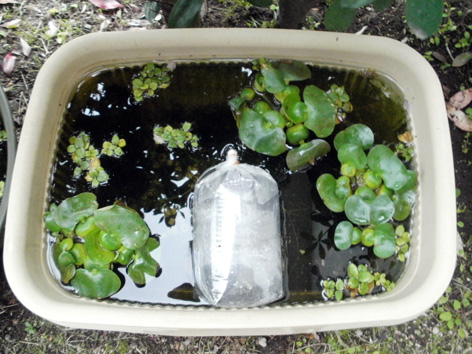 今日は朝から庭の草むしり、根を取り除きながら時間をかけます。そのやり方を夏迄に3~4回程することにより、夏の草むしりが楽になります。根を抜きながら、雑草のランナーを見てこれが水草だったら嬉しいのにと思いながら作業なんとか午前中ギリギリに終わり家族で昼食そして買物がてらお店をブラブラとして夜食も回転寿司で済ませました。嫁も日曜日になったかな? そんな1日でした。ビオトープへ買物の途中で見つけたホテイ草をいれました。先週の日曜日に探したのですが、どこのショップも売切れ??店員さんへ聞いてみると 今年は良く売れてすぐに売切れ みたいです。全滅した方が多いのかな?今日は2個発見 速攻購入しましたが 1個200円×2個=400円でした。2本のビオトープへそれぞれ1個入れて見ましたせめて2個づつですね。また追加購入してみます。アマゾンフロッグも浮いてますが、これは昨年からの越冬です。夏になればきれいな状態になってくれます。写真は撮っていないのですが、ついでに石巻貝も2個×2本=4個入れました。今年のこの庭 昨年この庭で採れた朝顔の種がたくさんあるので、今年はヘチマの予定の場所まで朝顔にしようと思っています。