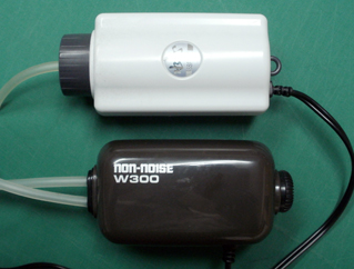 昨日、スポンジフィルター投入でエアー不足になった60cm水槽書込みにていろいろ情報を頂いて感謝です!!eitaro98さんの書込みにて私が違う水槽で使用している水心SSPP-3S情報をいただきました。早速、入替作戦START!!一旦はずした、私のエアーポンプ2台です。スペックを見てみると水心SSPP-3S 最大2,500cc×1吐出口NON-NOISE W300 500~2,000×2吐出口スペック表示を見るとNON-NOISEが上に感じますが、実際の使用では水心の方が良い結果が出ました。水心の方が力があります。せっかくなので壁掛け設置へ変更!!振動と音ですが、NON-NOISEの勝利・・ 水心のポンプ ハズレかもしれません(涙)おかげさまで、買替えの出費をしなくてすみました。(喜!!)フィルターの吐出し口の写真・・・ミスりました(汗!!)スミマセン機会を見てUPします。みなさんありがとうございました!!今日のレッドビーシュリンプモスラ手前のドット系たちです。選別と共に60cm水槽の左へ引越予定ですが・・次の稚エビ誕生が進み追いつきません。もともと春の抱卵ラッシュ時期にレッドビーの水槽引越をするものではないですね。気長~にやってきます。エアーポンプ入替で満足の200hiaceでした!!日本ブログ村のランキング参加、1週間経過しました。この1週間でいろいろな方々からコメントを頂き、以前よりも楽しく感じています。感謝!! 感謝!! 本日も、応援の ポチッ お願いします。にほんブログ村