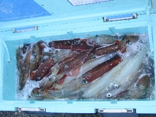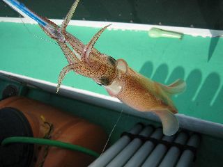 本日は、石花海のヤリイカ釣りに行ってきました。石花海とは・・・御前崎~石廊崎の中間くらいにある浅瀬。浅瀬といっても、70~300M位までいろいろ・・・。なんせ、その周りは、水深何百Mの駿河湾ですから・・・。曇り空で、少し寒めの1日でしたが、結果は・・・ヤリ45杯、スルメ1杯でした。今夜は、もう眠いので、失礼させていただきますが・・・また、明日にでも釣行記UP!しますので、よろしくね!!!酒も入って・・・では・・・