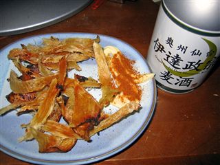 今日も、仕事がバタバタしていました・・・がっ!?日曜の早朝4時から太刀魚釣りが急遽決まりました先週末の時点で、すでに満席。しかし、今日キャンセルが出たらしいです正月明けの仕事では、嫌な事も有ったし、忙しかったので、海にストレスを流しにいけるなんて・・・しかし、船宿の女将さん曰く「定置網には、大量に入ったらしいけど、釣りは・・・10本程度とかって!?」まあまあ・・・良いでしょう。釣れるも釣れないも分かりませんしね。海に出られるだけマシでしょう10本???それだけ釣れれば我が家で食うに困らない量ですし餌と、ジギングの2本立てで、がんばってみたいと思います。完全にストレス取るには、クーラー満タンにしないとねまっ!乱獲は、やめておこうかいね・・・ 明日晩酌できないので、今夜、釣りの準備(仕掛け作り)をしながら、チビチビやってます!!!明日も、仕事で、・・・忙しそうですでも、その後は・・・やっぱり・・・ヤリイカのスルメも美味いな~♪