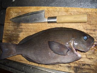 今日は、知り合いからメジナを頂きました。32cmで、まずまずのサイズですが、この時期なので、煮付けにしようと思います。明日は・・・メジナ(グレ)の煮付け決定!?そんな事を思っていましたら、釣り友からで、「仙台のカレイ欲しい?」って!?はい・・・もちろん頂きました。この方、仙台まで『カレイ』を釣りに行ったんですね~80匹ほど釣ってきたそうです仙台のカレイは・・・そんなにも釣れるんですね~で、こいつも明日の晩に油で揚がる予定です楽しみ楽しみ・・・