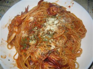 ネタ・・・特に無いので、12/2に作った昼飯を紹介・・・。マルイカのゲソを使ったパスタマルイカちゃんは・・・本当に、柔らかくて、美味しいですぞ!冷凍ストックしていたゲソをたっぷり使い、パスタを茹でながら、フライパンで、トマトソースを作り、ゲソも煮て、スパを絡めて出来上がり。面倒なら、トマトピューレや、レトルトを使います。フライパンに、オリーブオイル、ニンニクおろしを入れ、香りが出たらゲソ投入。(野菜類は、ゲソの前に投入) レトルト(肉無し)を入れて、ケチャップ少々、塩コショウ少々、味を調えて、茹で上げパスタを投入、絡めて皿に盛り、乾燥バジルやチーズを散らせば完成!ああ~っ!?また食べたくなっちゃう・・・