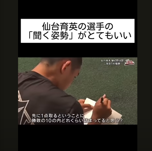 昨日の記事の続き。火曜日に授業で中1に日曜日の模擬試験について連絡事項を書いて告知した。誰もメモを取らない。「メモしなくてもわかるの?」と聞いたら「ハイ、大丈夫です」とか言ってきた。ハァ~( ゚Д゚)メモしなくても全部覚えることができると考えてるのか?どのくらいの成績で言ってんの?学年1位が言うのならば多少はわかる。しかし学年〇〇位で会話も厳しい状況でメモしなくても覚えることができると思ってるのか!?で、メモをさせるとノートのいろんなところに書こうとする。ここからだよね。ここから変えなければいけない。小学校で「話を聞くときは手は膝の上」と指導されている。ウチでは「話を聞くときは必ず筆記用具を持つ」これが常識。話の聞き方メモを取る重要性とやり方から教えなければいけない。高校野球、夏の甲子園もベスト4決定。準決勝と決勝を残すだけ。ネットニュースで(確か)仙台育英が負けた後に(多分)須江監督がミーテイングで話している動画を見た。多くの選手が手にメモ帳をもって監督の話をメモしている。試合直後のユニフォーム姿。この状況ですぐにメモ帳を取り出してメモをすることができる。普段の準備が想像できる。流石、全国トップレベルの強豪校。ネットで当該動画を探したが見つからない。そこでyoutubeから適当に拾ってきた。実際、ウチの生徒達には連絡事項はスマホで写真撮って保存することを認めてはいる。授業の板書を写真で保存するのもOKだが多くの生徒は写真撮って終わりだろう。ひかりゼミHPはこちら
