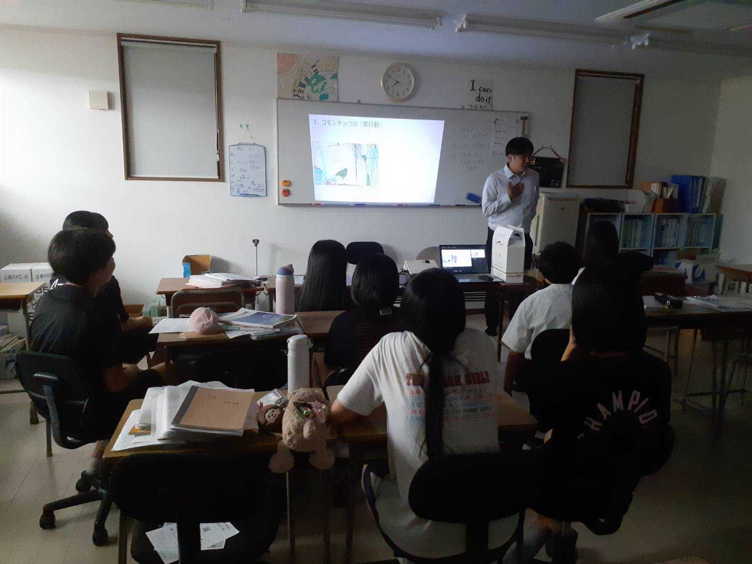 土曜夜12期卒業生の元スタッフのNPが登場。ひかゼミから学付高・熊大理学部へ進学し現在は北海道大理学部大学院2年生。夏休み臨時スタッフの大学1年生2人は中学時代にNP先生に習っている。数日前に帰省の連絡を貰った。時間を調整して中3生の前で中高時代の話、大学の話大学院での研究の話をしてくれた。熊大時代はカニのハクセンシオマネキ北大での現在は鳥のさえずりの研究をしている。研究内容はそれなりに専門的だが中学生にも理解できるように分かりやすく話してくれた。カニも鳥も自然界の生物の生存の目的の中心は「種の保存」つまり伴侶を見つけて子孫を残すこと。オスがメスに選んでもらうために色々と工夫をして生きている。オスが「モテたい」という表現をすると中学生の食いつきも良い(笑)プロジェクター持参で研究データを示して統計学まで踏みこんで現在の勉強がどのように将来の学問に繋がるか、だから今の勉強を大切に!なかなか上手いまとめ方。最後は中学生の恋愛相談まで受けていた。NP、成長したな~(笑)ウチでは卒業生が来たら生徒の前で色々と話してもらうことがある。今年の中3は雰囲気が良いと先週日曜日の記事に書いた。今年の中3はNPの話を聞く姿勢が良い。笑うべきところは笑うし質問を求めたら次々に質問が出る。主体的・積極的な姿勢色々と興味を持つ行動ができる。簡単に言うとノリが良い学年は伸びる。もちろんNPが腕を上げたこともあるが。ひかりゼミHPはこちら