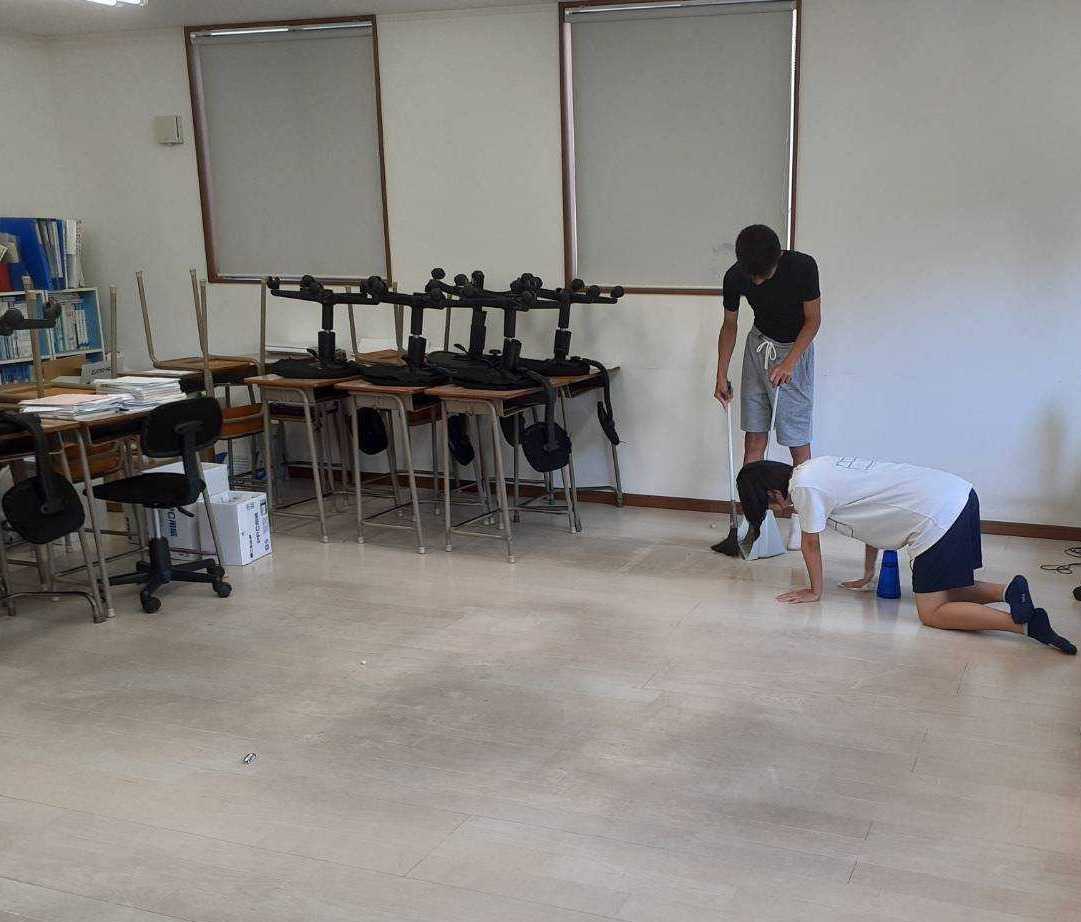 お盆休み初日は毎年恒例の大掃除。中1から中3まで10数名が集まってくれた。教室の大掃除をするとそのあとに生徒たちが教室をきれいに使ってくれる。(ような気がする)今年は初の試み駐車場の草取り(ミントとドクダミ)と大きくなりすぎた観葉植物の伐採。皆さんのおかげで教室内外がスッキリしました。有難うございます。教室の床の掃除夏場は床が黒くなる。草取りと伐採と水槽掃除そのあとは恒例の水遊び。クマノミ水槽もキレイになった。草取り中に出てきたカマキリ夏だぜ!ひかりゼミHPはこちら