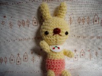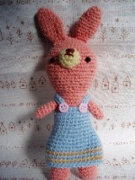 着せ替えができるうさぎさん。でも、まだワンピースしか作れなかったの。毛糸もおうちにあった余り毛糸。色合いが合っているような合っていないような・・・。まだまだ練習中って感じですね。