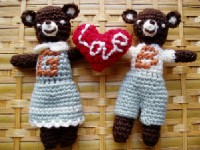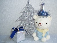 クリスマスのくまちゃんです☆毛糸はベビー用のもの。色合いも素敵ね・・・自画自賛♪