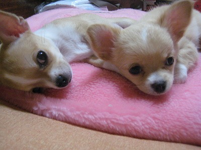昨日からスムースの耳が半分立った!!甘えっこのはせがわくん!みいみだもんね!でも、朝3時40分に起こされた私。行ってみると、子どもたちの真ん中のトイレシートが半分めくれていた。直してやると足元で絶好調の子どもたち。まだ、夜中だよ!そんなことで、起こさないの!!ちか!