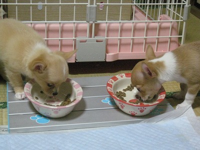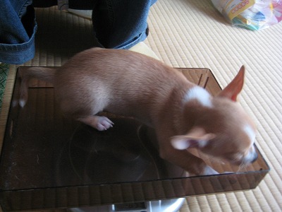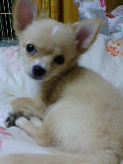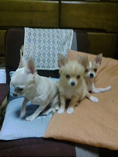 しかし、暑い!連日35度。でも、茨城はまだ涼しいみたいだ・・・・。まず、一昨日の話。私には、三つ上の姉がいて三人の男の子がいる。下二人を連れて来た。姉は、実家なので、月1.2回ちょっと寄る程度に顔を見せる。ご飯は食べていくことはない。今回、お出迎えワンコ三匹!姉は、犬が苦手である。(これは、長男も同じ)。びっくりした姉!「なんで、増えているのよ!!」(減ったんだけど・・・)今まで、姉が来た時は茶の間には出さず、おとなしかったこともあり、気付かなかったのだ。最近、来ていなかった三男は知らなかったが、長男、次男は、何度か見ていたのでもちろん知っていた。「R君(次男)、言わなかったの?」「うん!」「S(長男)も言ってないの?」男の子って、本当に無駄なことは言わないんだ・・・・。と言うか、次男の場合、自分の母親がどのぐらい驚くか見たかったんだろうね!口が堅い!というか、姪っ子だったら、絶対に言っていると思った話。知っていますか?さきちゃんの尻尾の先は、白い!んだよ。体重を測っているのが、気に入ったらしい。いただいたサンプルの洋服を着せられたみいみだもんね。机の下が好き!ハイネックのものは、スムースの方が似合うなぁ!お洋服なら、ベテランちかちゃん!今日の写真の背景が悪すぎる!さきは、1kg超えたようだ。食べ物をそれぞれにやると、みいみよりも食べるのが早い。やはり、身体が大きいからだろう。ちかは、2.1kgを超えていた。ほぼ断乳もしたので、今夜からライト食へ。ロングとスムースがいると、違いがわかる。骨格は、スムースの方がしっかりしている。ロングは華奢な感じ。寝るときは、少しでもやわらかい場所を選ぶさきと違い、板の上とか買ってあったアルミ板の上でもどこでも寝るのがみいみ。性格の違いなのかわからないが、スムースのさきの方が、ふわふわ感を求めている気がする。午前中。やっとお休みの夫さんを連れてけんしんへ。「いつもお世話になっているんだから!」と口座を作らせ、定期を作る。10時も過ぎて暑かったので、お供はちかだけ。それも歩かせず、膝の上。その後、夫さんは、アキバに行った。アキバといえば、AKBの子が恋人との写真が流れてクビと聞いた。もちろん誰だかわからないけど、年を見て「15歳」!!おいおい!15でクビって??わかんないーー。