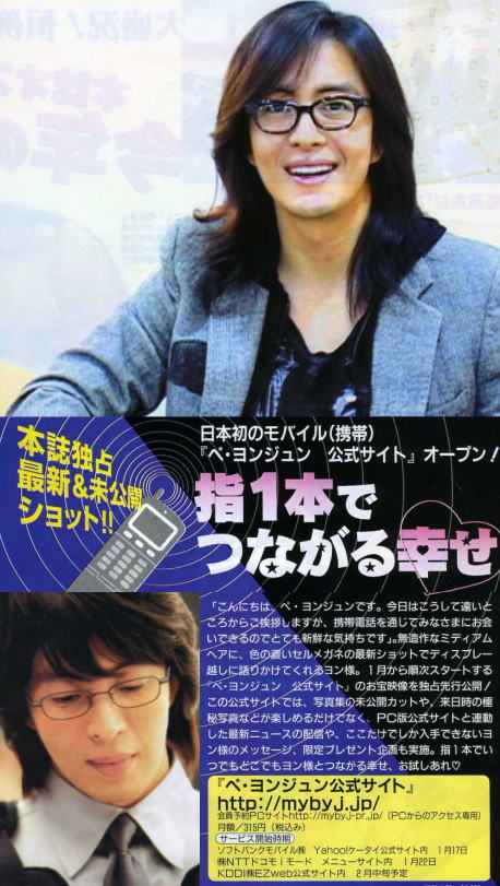 明日は、卒業式の袴の着付けがあり 店の裏の部屋の片付け中です・・・(^^;;;;;;で、積み上げてた 少し前の雑誌を捨てようと 欲しいページあるかどうかをチェックしてたらカッコイイのやら 面白いのやらの発見で、なかなか進まない・・・(T▽T)アハハ!で、このいらない雑誌なんだけどただこのまま捨てるのももったいないので少し切り抜いたのをココに貼り付けてみようかと・・・(笑また、遊ぶのかよ!ヾ(・・;)ォィォィ ( ̄▽ |||)アハハ、、、ではでは・・・↓ネットしてる人にしたら とっても古い記事です~(^口^;)でも、いいんです!σ(o^_^o)?は知らなかったんだから・・・(爆◆◇・:*:・◇◆・:*:・◇◆・:*:・◇◆・:*:・◇◆・:*:・◇◆・:*:・◇◆・:*:・◇◆まずは、ヨンさまからぁ~♪携帯版の公式サイトができたんだね~( ̄。 ̄)ホーーォ知らんかった・・・(笑↓このヨンさま ちょっと濃くて怖い・・・( ▽ ;)ははは ロン毛に黒縁メガネはちょっとでは~? なんか、しつこく見えるような・・・(←ヨンさまペンの方 ミヤネヨ・・・)◆◇・:*:・◇◆・:*:・◇◆・:*:・◇◆・:*:・◇◆・:*:・◇◆・:*:・◇◆・:*:・◇◆ココからは、単に男前だったのでUPしまぁ~す♪ 。゚(゚ノ∀`゚)゚。アヒャヒャ↓やっぱりカッコイイッ! 久々のサンウssi~(ノ∇≦*) キャハッッッッ♪.。゚+.(´▽`)。+.゚+・゜ポワァァァン↓左上は男前~壁|_-o)ポッ 右上のサンウssi超可愛い~ッ♪ o(≧▽≦)oきゃあ最近、サンウssi見てなったから忘れてたけどやっぱりカッコ可愛い~~~(/∇゜\)チラッ♪(*/0\*)イヤァーン♪◆◇・:*:・◇◆・:*:・◇◆・:*:・◇◆・:*:・◇◆・:*:・◇◆・:*:・◇◆・:*:・◇◆今度は、スンホンssi~♪ ↓こちらも、男前ですわぁ~~~o。( ̄_ ̄ )ボー…スンホンssiは 男前過ぎですね~(*⌒m⌒*)ぷっっ♪でも、目の保養には抜群!(笑◆◇・:*:・◇◆・:*:・◇◆・:*:・◇◆・:*:・◇◆・:*:・◇◆・:*:・◇◆・:*:・◇◆お次は、ちょっと面白かったので2つだけ拾ってみましたブイッ♪( ̄m ̄*)v有名人そっくりさん!?だそうです・・・●σ(^^*)の好きな浅田真央ちゃんは!?・・・↓↓↓↓↓↓↓↓↓↓↓↓↓↓↓↓↓↓↓↓↓↓↓↓↓↓↓↓↓↓↓↓え(・▽・;) エエェェ('A`ノ)ノェェエエでも・・・ ((*≧m≦)ププッ そっくり~~~ッ! 似てるよぉ~~~(o_ _)ノ彡☆バンバン真央ちゃん 可愛いのに植輪ってちょっと可哀相かな!?(笑真央ちゃん ごめんね・・・