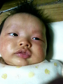 見てるだけで痛々しい悠哉のほっぺが痛々しいほどに荒れて真っ赤になっちゃいました乾燥してるし仕方ないのは分かるんだけど、乳液や薬塗るのも痛そうで産院でもらった薬もなくなってきたから明日小児科にでも行って薬もらってこようかなでも、当の悠哉は薬や乳液塗るのは嫌がって泣くのに、何もしなけりゃ写真のようにぽわぁんと平然な顔痛くないんだろうねどっちにしても薬は必要だから明日小児科へ行ってきまぁすレッツラ・ゴォ