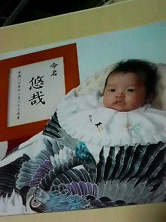 元旦に撮影した宮参り写真の引き取りに行ってきました楽しみにしてたんだよぉ1 命名紙とともにかっこよく写る悠哉 プロに撮ってもらうからか悠哉もプロ気分でカメラ目線で顔作ってる2 ミッキーさんと一緒にパチリ 初めて見るミッキーさんにちょっと緊張気味 リラックスリラックスだよ3 初めての家族写真 いい思い出になりました これからも節目節目で撮っていきたいな ただ、ママの髪留めが少し浮いてるのが残念4 初タキシード 口をしっかり閉じてお目目はパッチリ開けて笑顔作り その顔はママの真似かな5 オマケでもらった家族写真のキーホルダー 結構大きめで会社の飾るか、かばんにつけるかどうしようかな パパとママが悠哉を見つめて我ながら微笑ましい これからいい家族を作っていこうねとまぁ、こんな感じですこれからも色んな思い出を作っていきたいなしばらくは遠出は無理だけど、色んな表情・行動を残して行こうと思います