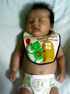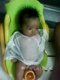 今日は頂き物のバスチェアでの初入浴でぇすパパに入れてもらってご機嫌中をパチリ気持ちよさそうお風呂好きな悠哉にはあってるのかなところが ところがママ大失敗悠哉のジュニアをモロ写しちゃったごめぇん隠したから許してねお風呂から上がったら満足なのか秒殺で寝ちゃいましたよっぽど気持ちよかったんだね実はスタイも今日はおNEWです買ったばかりのバンダナスタイキノコちゃんとボーダーのリバーシブルタイプアップにしたら分かるよねキレイなグリーンです今度犬のを着けたらまたアップしまぁすヨロシクね