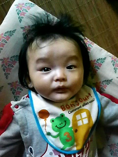 やっと満5ヶ月です早いもんです本日も恒例のをパチリ寝起きなのに一生懸命顔を作ろうとするところが可愛いおちょぼ口にちょい笑顔頑張りました頑張った後はお食事タイム無我夢中でゴクゴク・グビグビしておりますまだ本調子じゃないから咳き込んじゃったりするけど、いっぱい飲んで大きくなってね次はとうとうハーフバースデイです