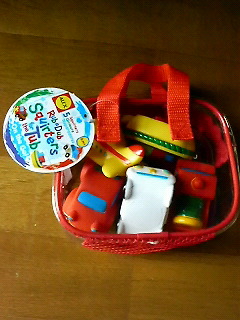 お休み前と言う事で、少し早いですが瀬里チャンママから誕生日を頂きましたお風呂でも遊べる、乗り物の形をした水鉄砲男の子らしいですね早速今日パパと一緒に遊んでもらおうかなどんな風に興味を示すか楽しみです