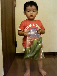 プランター菜園ですくすく大きくなっている野菜たち今日は悠哉が収穫のお手伝いをしてくれました自慢げに持ってるこの悠哉の顔ったら何とも言えないですね結構取れました中身は夏野菜のピーマン&胡瓜悠哉はキュウリは苦手だけど、ピーマンは好きなので、チンジャオロースやこふき芋などにしようと思いますまだまだ小さな実がいっぱいあるので、特にピーマンは人にあげれるほど出来そうです簡単にたくさん出来、連作もなのでピーマン大成功です