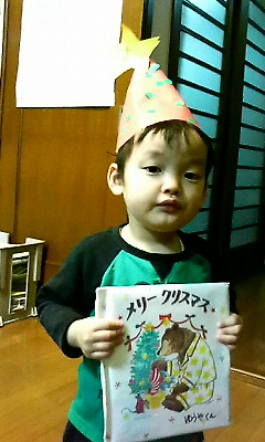 よく走りよく笑いよくふざけ2歳らしい姿になってきましたただ最近嫌な事・思い通りにならないと急にMAXに泣き出すんです困っちゃいますでも、2歳にもなるとサンタさんを理解しているようで、プーさんサンタ等を見て『サンタさん、サンタさん』と言っています『サンタさんに何もらうの』と聞くと『アンパンマン』あと1日しっかりお願いしておこうね