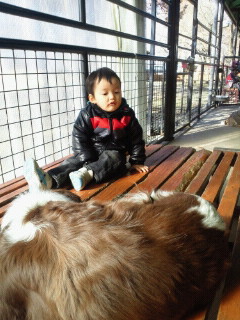 5月に口蹄疫の関係でふれあい制限があり、そのお詫びに無料券をもらったのでリベンジに行ってきましたところが、リベンジ失敗です何故か「ワンワンこわぁぁい」噛まれたりした訳じゃないのに、遠くからかパパの上に座ってじゃないと見ようとしませんワンワンなのに、大きいのは怖いと思うようになったのかな小さいだとこの通りベットの中だからかもしれないけど楽しそうな顔結局こんな感じで、芝生のところに出ても寄り付かず、そそくさと出て行くことになりました良かれと思ったのに失敗に終わりましたそれから園内を一周していろんな動物を見たり、写真を撮ったりして悠哉の顔がなので帰ることに。なんともう15時たくさん歩いて、はしゃいで眠いはずクマのところでは相当好きみたいでパパが呆れるくらい動いてくれませんでしたそして帰る間際出口付近のこいの池でえさやりをして帰りました(楽しかったようで2箱も。結構入ってましたよ)