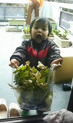 うんとこしょ、どっこいしょ大きなかぶのお話と同じように、大根を抜いてみましたみんなで一緒に全部抜くと見て見て『取ったどぉぉ』袋いっぱいになるくらいありましたちょっと小ぶりのような気もしますが、プランターで出来た割りには上等ですコレでサンマとかサバ食べたら美味しいだろうなぁ悠哉は無理だろうけど食べるのが楽しみです