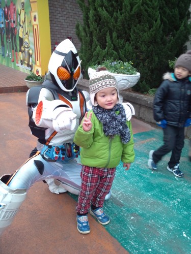 今日は1ヶ月以上前からずっと楽しみにしていた仮面ライダーショーを見にかしいかえんに行って来ました入場すると目の前にはフォーゼとウィザードが・・・もうこれは一緒に撮ってもらうしかないでしょ嬉しそうだよねショーが始まるまでアトラクションルームで遊んでるところ実はここでウィザードと一緒にキャッチボールもしましたその後始まったショーでは、敵が近くに来て多少怖がることもありましたが、戦いのシーンでは一生懸命応援してとても嬉しそうでした何故か彩夏もガン見でしかも今日は過去のライダーも合わせて6人が大集合でお得な気分いい一日になりましたそして夜は恒例のクリスマス会年に一回しか会えないお友達と遊べてとっても楽しそうな悠哉なのでした