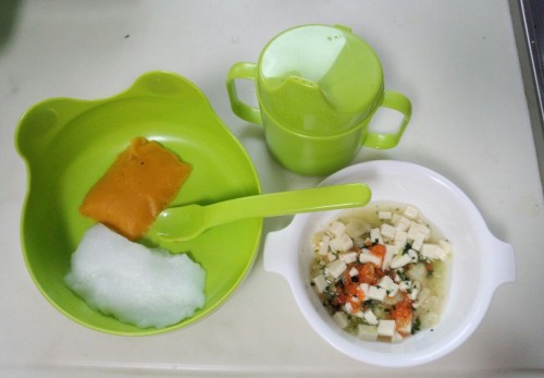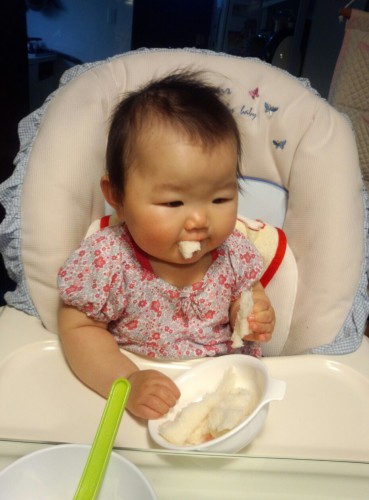 5ヶ月も過ぎ、1週間位たち、とっても食べたそうにしてることからちょっと早い気もしますが離乳食開始しました食べたそうだった割にはあまり美味しそうにしませんが、そのうちなれてくれるでしょ10倍粥のすりつぶしはナカナカ大変ですがとっても楽しくもあります美味しそうに沢山食べてくれるようになる日が楽しみです