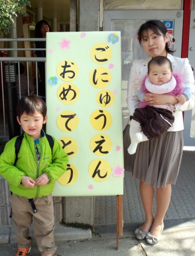 本日めでたく彩夏がさわらび保育園に入園しました日曜から高熱が出て40℃前後ずっとキープだったので出れないかと思ってたけど、何とか薬が効いて熱が少しひいたので式に出てきました(彩夏よ、無理させてごめんね)ちょっぴりおしゃれをして参加ですママは懐かしの悠哉の時と同じ服彩夏はやっぱりグズグズでしたが出席してよかったですこれから6年間頑張ろうね