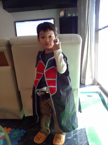 先日ウィザードのチョコボールのプレゼントに応募していたプレゼントが届きましたウィザードのコートなのですが、ちょっと大きめですが開けた瞬間に気に入り、ベルトと指輪を持ってきて『悠哉じゃないよ、ウィザードよ』と完全になりきってます喜んでくれてよかったぁ親バカながら30個も買って応募してよかったぁ中身のチョコボールはほぼママのおなかの中でした