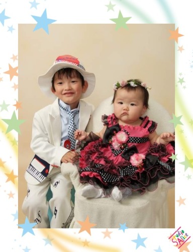 今日仕事が終わってからスタジオアリスに行って来ました悠哉5才の七五三ですついでに彩夏も着物やドレスを着せて一緒に兄妹写真2人とも機嫌よく時間が遅かったにもかかわらずにっこりしてくれました彩夏は泣かなかっただけでですこれは早撮りキャンペーンのプレゼントの携帯の待ち受け画面用写真十分ですこれからも2人仲良く元気に成長してください