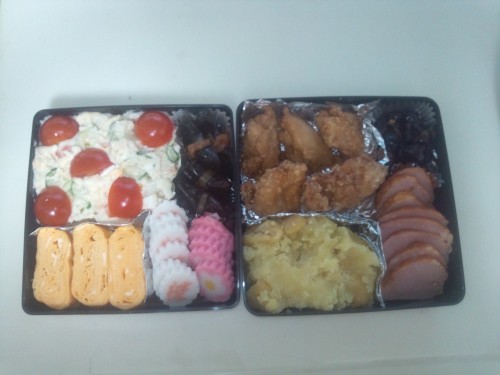 あけましておめでとうございます今年もどうぞ宜しくお願い致します。さて、お正月と言えば おせちと雑煮今年は家族4人で過ごす初めての正月なので、博多雑煮の出汁と御節を作ってみました出汁は旦那の実家の味をうまく再現できて大成功(やったぁぁ)御節はと言うと、煮物や紅白なますとか黒豆は旦那も子供もあまり好まないので、みんながちゃんと美味しく食べれるようにお子様メニューにアレンジみんなの大好きな栗きんとんやから揚げは多めにおかげで毎回空っぽになるくらいちゃんと食べてくれてこちらも大成功少しずつ普通の御節に近づけたらいいな今年も家族4人仲良く元気に過ごせますように・・・