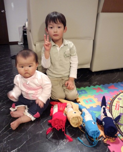 彩夏も満8ヶ月になり少しずつハイハイをするようになりましたそして、山口のおばあちゃん、田辺さん、姉夫婦が悠哉にさげもん製こいのぼりのプレゼントまで作って持って来てくれました彩夏は何と何となぁくママとか、ご飯とか言うようになったり、おもちゃのラッパを吹くようになりましたたった1ヶ月で急成長していますハイハイも大分スムーズになってきたし、ベットに乗せてるとつかまり立ちをしようとするから危ない危ない身長も70.5cm、体重は8700g と 大きくなりました悠哉も身長103.6cm、体重16.2kgと今は縦に成長中食生活の成果か今のところ太ったりはなさそうですそしてさげもんこいのぼりも自分専用ととってもうれしかったようですお外用に、ちりめんこいのぼりに、さげもんこいのぼりこいのぼり大好きな悠哉にとっては夢のようですちりめんこいのぼりは玄関、さげもんこいのぼりは寝室に飾りましたこれで晴れの日も雨の日もバッチリ2人とものいい1日になりました