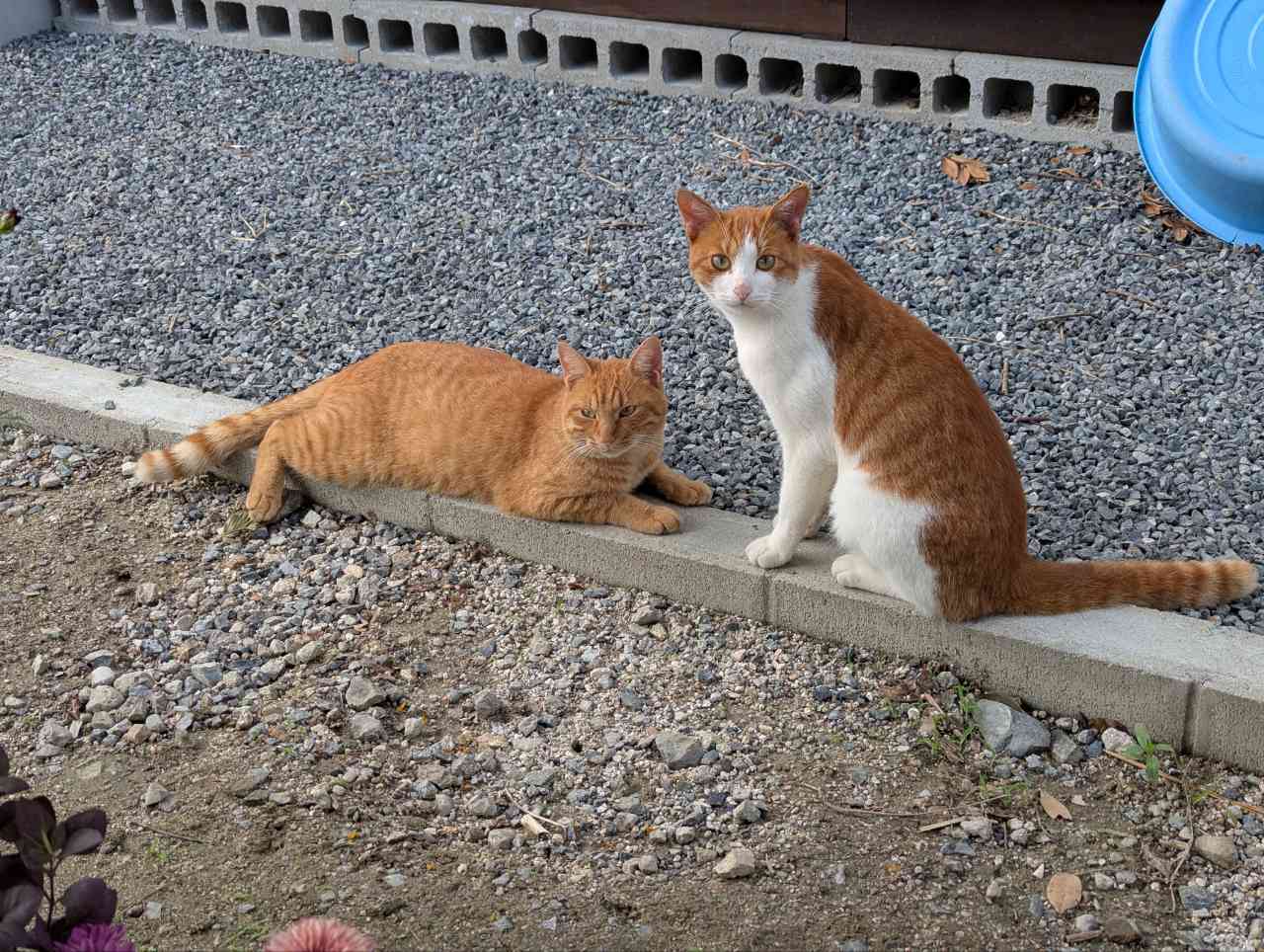 兄弟なのか仲良しの猫ちゃんです。如れ合っているのを見るとほほえましいです。ポーズも可愛らしい。綺麗な花なのでアップで撮影。コスモスも多種あるようですね。シンプルなコスモスですが、オレンジは元気を貰えそうです。母は高血圧から回復して、無理のない程度に農業をしています。母は散歩人から声を掛けられてなかなか農作業が進まず。。。私は奥地で作業しているので、声を掛けられない環境でマイペースに作業をしています。種まきのために苗床を整えることから始めました。土が不足しているので明日買い足すことにしました。