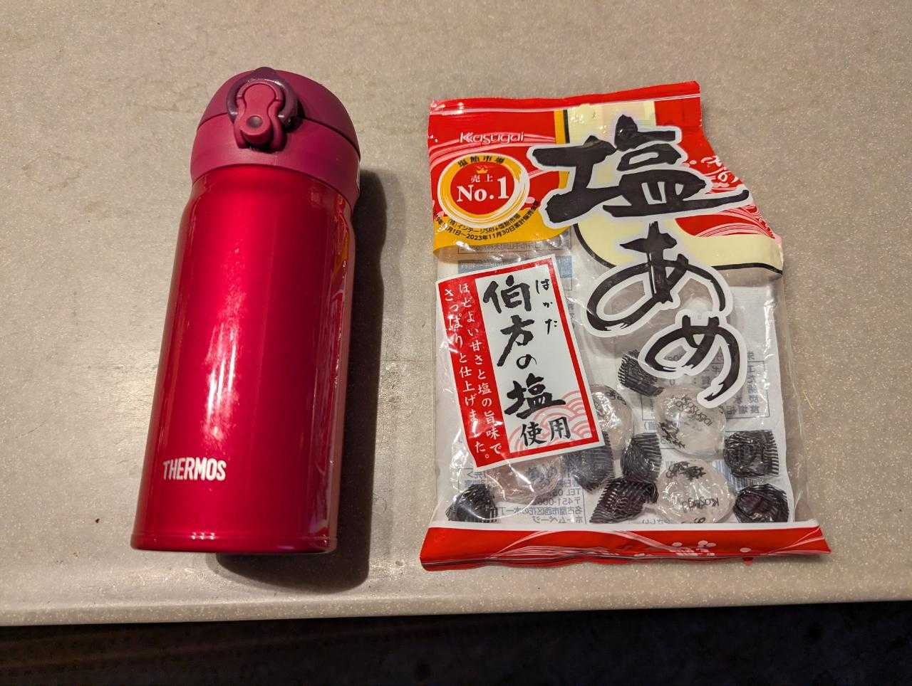 これだけではミネラルが汗で出てしまいますので、塩飴もなめます。