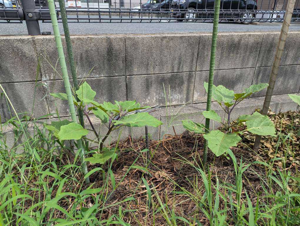 この時期にナスの苗がまだ幼いのは秋ナスを目指しているからです。