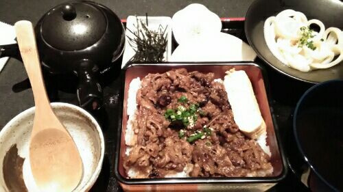 お休みの日、友達とランチしてきました。 時々行く焼き肉屋さん❤ ランチを始めたっていう情報が 入ったので行ってみました😁 色々ランチメニューがありましたが、私がチョイスしたのは! 炭焼牛カルビまぶし重 小うどんがついて1200円🎵 美味しい!!! やっぱ焼き肉屋さんだわ😊 光って白くなってるけど、卵焼きがのっています。箸休めになり美味しい❤ 最後に、少しだけご飯とお肉を残して、お出汁をかけで食べるんだけど、、、 うーんよくわらかない、、、そのままの方が美味しいって思いました(笑) デザートは、☕がついて200円🎵 ブリュレをチョイス! 甘いのってホッとするね~幸せ~💟 そしてお会計(1200円プラス200円)のはずが、800円?! ん?と思い、店員さんに聞くとランチ半額期間です!って😊 何も知らず行ったから得した気分でした🎵 では最後に!まだハマってます(笑)