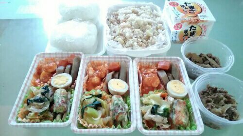 昨日、息子のアパートに行ってきました。 目的は、コタツ布団の回収です。 さすがにもういらないっしょ! ついでに掃除💦 久しぶりに作ったお弁当~ (前日の夜作ったもの) 根菜の煮物、エビチリ、野菜炒め ムネ肉のソテー、味玉子 ちくわの天ぷら(マヨネーズ入) 小分けしてあるのは、牛丼の具です。 お昼に一緒に食べようとタケノコご飯も持って行きました。 (その日の朝作ったもの) お弁当三個は、すぐ!冷凍室へ! 同じメニューのお弁当、、、 食べ方は、彼次第です(笑) 夜は、はま寿司に行ってきました。 安定の美味しさと、安さでした😁