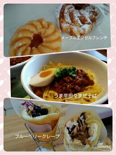 うーーー嫌いじゃーーー湿気😫😫😫 毎日、髪の毛がボサボサーーー💦💦💦 朝、昼と二回、アイロンをかけてますぅ~😢 最近、ハマっているもの✨ それは、まぜそば♪ この前、息子に連れてってもらった、まぜそばの店(てっぺん) どんな味?って聞かれると、説明しにくいんだけど(ジャージャー麺に似た感じ? 中華麺にチャーシュー、玉子、ニラ、のりなどがトッピングされていて、タレと混ぜて食べる。 そのお店では、無料でご飯(コシヒカリ)がおいてあり、残ったタレに追い飯ができる! それがまたうまかった😁✨ 実はその後、家でも作ってみた。かなり店の味に近くなった。自画自賛😁 そして休日に、ドーナツ一個のクーポンを使いにミスドへ行った。 オオ!ミスドにもまぜそばがあるではないか! ちょうど昼も近かったので、食べてみた。 一口目、うん!うまい! でも段々くどくなってきて、 追い飯が欲しくなった。しかしミスドには、、、追い飯はなかった(笑)💦 おやつに買ったドーナツ❤ メープルエンゼルフレンチ最高✨✨✨ クレープは別の日に、お客さんの知り合いのお店に立ち寄り食べた。 ブルーベリークレープ❤ 酸っぱ過ぎず美味しかったo(^▽^)o
