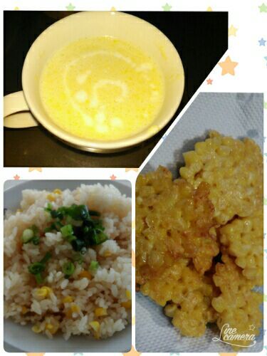 息子の友達から、とっても甘いトウモロコシを頂きました❤ 8本くらいあったかな?😁 塩をふって、サランラップで巻いてチン!美味しい✨✨✨ せっかくだから、新鮮なうちに色々作ってみました🎵 まずは、和風トウモロコシご飯❤ 炊飯器で、本だし、醤油、酒。 うーん、、、やっぱり、トウモロコシはピラフが合うな~😁 お次は、コーン揚げ❤ これは!美味しい! でももう少し、パリパリ感が欲しかったかな~💦 そして最後に、初!コーンボタージュ❤ ヤバいよ!ヤバいよ! めっちゃ!美味しい✨✨✨ 1 スライスした玉ねぎ2分の 1個、トウモロコシ2本分の コーンを20gのバターで 炒める。 2 水100CCを入れ沸騰したら コンソメ2個を入れ溶かし 牛乳400CCを入れる。 3 何度かに分けて、ミキサー にかける。 4 鍋に移し、沸騰直前まで 温める。 最後に塩で味を整えるんだけど、そんな必要はありませんでした。コーンが十分甘いからo(^▽^)o 明日の朝は、パンとコーンポタージュにしようと思います。 おやすみなさい(^_-)-☆