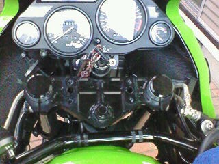 こんばんわ~~久しぶりに 太陽見た帰宅後 明るかったのでまたまた?ニンジャをハンドルが 取れてますハンドルブラケットを 交換中予定だと、今までより 15ミリダウン・17ミリ前に????交換後 跨ったがイメージと 違う(笑)でも、ハンドルが 下がったのでポジションが ツーリング仕様~峠仕様に (ヤッパ 最後は ニンジャにセパハンかな)週末 峠に行って 確認してきます~。。。※ポジション(ハンドル)は いつも 悩んでます~(笑)。