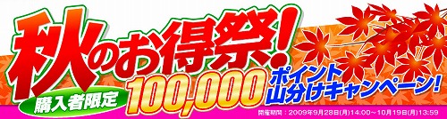 【楽天ブログスタッフ追記 2009年10月19日】本特集は終了いたしましたので、リンク先を削除させていただきました。こんにちは楽天ブログスタッフですm(_ _)m本日9/28(月)!こちらの10万ポイント山分け付お得特集をリリースいたしました今回もどどんと山分けがついて、ペットグッズや健康グッズ、ブランドものまでありとあらゆるジャンルを揃えて特集を組んじゃいました大特価SALE品、送料無料もたくさんあります見ごたえ十分の10万ポイント山分け付特集、早速チェックしちゃってくださいね 楽天ブログスタッフでした