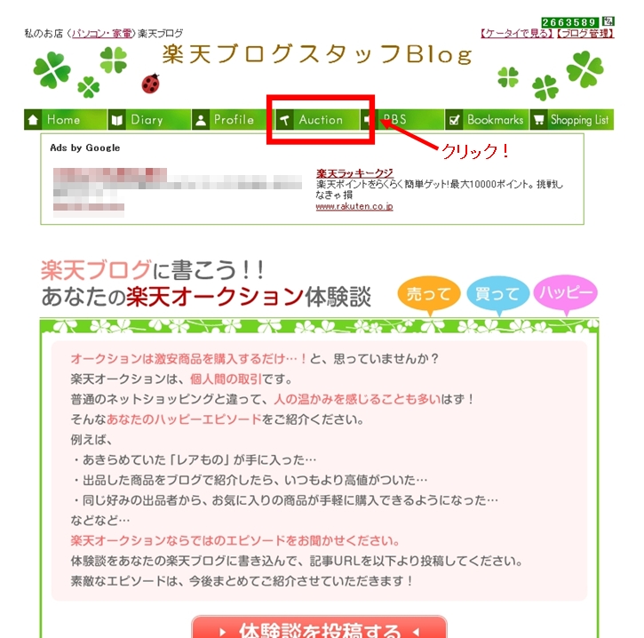 こんにちは楽天ブログスタッフです楽天ブログをご利用のお客様により一層ブログを楽しんでいただきたくオークションページをリニューアルしましたネットオークションは個人間の取引が手軽に出来るその上、楽天オークションは安心・安全に取引できるんです 楽天オークションが手軽に出来る仕組み入会費・年会費が0円安心・安全の決済サービス エコ感覚で楽天オークションに出品している人が増えている今!あなたも出品して楽天ブログに記事を投稿してみませんかお小遣いもGETできて、あなたのブログのアクセス数も増えるチャンスです初めてさんは、出品体験レポートをチェックしてくださいね初めての出品体験レポートはこちらさらに今なら初めてさんなら全員50ポイントもらえちゃう