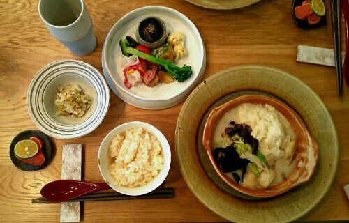 今日からまた冷えてきましたね。 そろそろ薄手のダウンの登場です! 相変わらず縫い物三昧の毎日ですが、ちょっとだけ秋を感じにBUNDCAFEでモンブラン食べてきました。 秋だねぇ~。 そして、久しぶりにお料理教室に参加して、栄養補給も完了です。 写真の他にお味噌汁とデザートが付きます。美味しかったです。 さて、久しぶりに着物の写真を 洗い張りしてよみがえった黒留袖。 比翼と胴裏は汚れてる所だげ取り替えて、使えるものは接ぎ合わせて使い、なるべくコストかけずに仕立て替えさせていただきました。 濃い紫の小紋。 あと少しで気になってるお仕立て物まで手が届く!! 頑張ります。 さて今週12日木曜から14日土曜まで、おてしお・江戸小紋と紬の展示会です。 http://www.oteshio.com/event_/5279.html 今回もお手伝いさせていただきます。 お仕立ての事などお気軽にご相談ください。 和裁教室のお問い合わせいただいておりますが、定員になりましたのでしばらく募集は締め切らせていただきます。 空きが出ましたらブログにてお知らせ致します。 cajun-moon165@ezweb.ne.jp