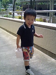 今日の診察で 胸の音もすっかり良くなってて完治=^∇^*= ご心配おかけしましたm(。-_-。)m いつもの様に 診察後 処置室に入ってく息子吸入する気満々でした(-^□^-)もう しなくていいんだよ♪ 息子の完治に合わせてか トマトが色付き始めました☆凄い!凄い!! 毎日 お祈りしてたもんね~ (^_^)V ピース ***********夕方*************実家に行くと 息子のパツンパツンの服を見かねてじいちゃんが服を買ってくれました♪ 西●屋。安いね~♪ でも 丈が気に入らない・・・・・このくらい↓↓↓の方が可愛くない? 西●屋 ファッションショーでした☆ 小道具で水鉄砲持たせたら・・・あご!!あご!!!!ぶちゃいくになってるよ(;-_-;) 『かたーーーーいっ!』って怒ってました 帰ってきたパパも参加して撮影会してました窓全開なのに 大きな声で『可愛い~~~可愛い~~~~♪』って 恥ずかしい家族でした♪~( ̄ε ̄;) ********************************** 夕飯の準備をしてると ニンジンを持ってチョロチョロ何を始めるのかと思ったら・・・・『 お~~~っちょ!にーじん トントン♪』(ママと一緒。ニンジンとんとん) って お料理を始めました=^∇^*= あらあら 可愛いわぁ ってしばらく好きにやらせてたらいざ ニンジンの出番が来ると どこにも見当たらない!!えぇぇぇっ! どこにやったの~!? 探しても見当たらない。すでに他の遊びを始めてた息子にダメもとで『ニンジンちょーだい』って聞くと・・・・ 引出しからニンジンを出してきてくれました そんな所にしまいこんでくれてたのね(T△T)・・・・・ 思い出してくれて ありがとう危うく 引き出しの中で腐っちゃうとこだったわ