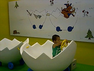 ぐりとぐらのともだちあつまれ! はりきって運転してました=^∇^*=順番待ちの列ができてたからすぐに交代『も~~~~~っかい(ノ。<,))))...』と 叫びながら泣いていました 他にはぞうくんのさんぽ だるまちゃんとてんぐちゃん などなど。。。。おなじみの絵本の世界が楽しめました♪ 息子の今日の服が ”変!!” といまさら気が付きパンツを購入+即着替えで ”おもちゃ”でランチ 息子と半分このつもりが 旦那の頼んだサーモンととろろ丼が美味しそうで。。。途中で交換してもらっちゃった(;-_-;) バーゲンやってるし・・・と色々お店を覗きましたでも 『可愛い♪』と手に取るのは【除外品】 試着したり うだうだ悩んでる私をよそに息子はちゃっかり店員さんのナンパに成功!!手をつないで店内散歩を満喫しておりました 私の買物の間 旦那様がいっぱい遊んでてくれたのでバギーで爆睡 久々に旦那様とのんびり お茶が楽しめました=^∇^*=ペリカンマンゴーといちじくのタルト美味しかった=^-^=♪
