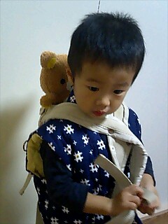 【おしん】 みたい・・・・ イッチョマエに子守り歌も歌っています ♪ゆ~りかご~の~う~~たが~~き~こ~え~て~く~る~よ~・・・♪(いきなりカエルの歌に変わっちゃう・・・)『っあ!違った。』 ↑↑これを何度も繰り返していました あまりの可愛さに 正しい歌を教えもせず 影からコソっと見続けてました=^∇^*= 夜 帰ってきたパパにコノ事を話すと得意げにおんぶをし始め・・・ 『もう ねんねちたかなぁ。』と くまちゃんを下し 『まだ ねんねちとらんかったわ。』と 添い寝を始めました カワイスギル・・・・(*0*;)☆