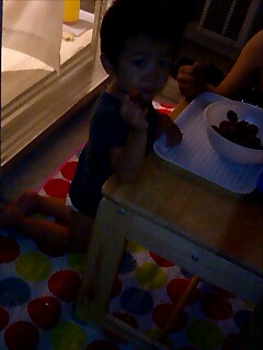 ・・・という事で 我が家は夕食後のデザートをベランダで食べました 綺麗なお月さまでした なぜ ブドウ???団子は? 「団子みたいに まるっこいから いいのいいの♪」って事になったので。 ベランダでのお月見に大興奮の息子は♪おつきさまこんばんは♪(息子作曲)に始まり♪ぞうさん♪♪げんこつやまのたぬきさん♪♪わにのおとうさん♪・・・etc を 熱唱していました(花見にいる酔っぱらいのおっちゃん並・・・) じいちゃん伝授の♪魚屋のおっちゃんが おどろいた ぎょっ(魚っ)!!♪を 連発しだしたので 撤収 さすがに それは恥ずかしいわ。 ちなみに ♪魚やの・・・♪は孫3人ともに伝授されています被害者の会?? 本人たちは大喜びだからいっかぁ=^∇^*=